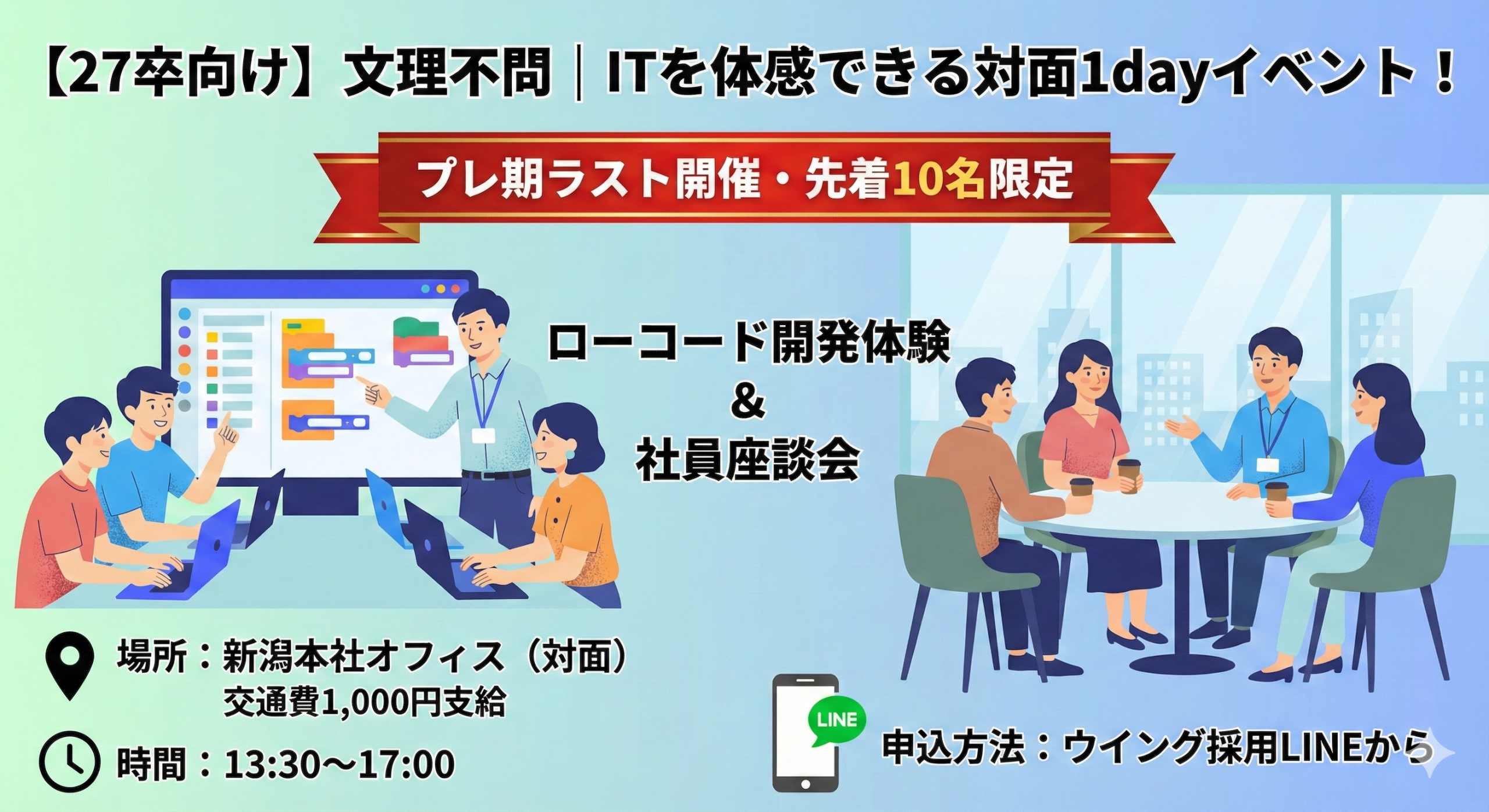 【27卒向け】文理不問|ITを体感できる対面1dayイベント開催のお知らせ(1/8)